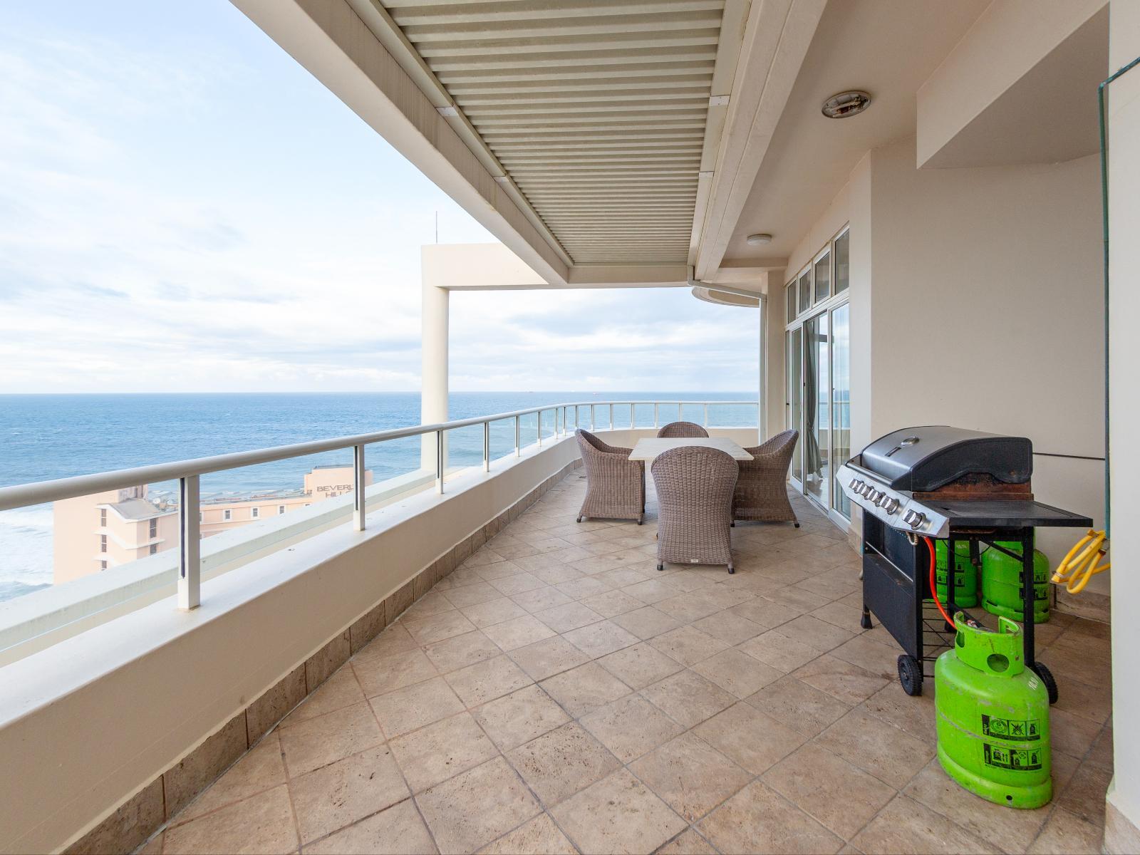 Featuring sea views, Unit 1101 Oyster Rock offers accommodation with braai facilities and a terrace around 100m from Umhlanga lighthouse and beaches.This apartment features air-conditioned accommodation with balconies and free Wi-Fi. The penthouse is a double story and is served daily.The apartment is fitted with four bedrooms and a fully-fitted kitchen. The property has four bathrooms and is equipped with free toiletries.The lounge and dining area are ideal for unwinding close to the ocean where satellite TV and a balcony can be enjoyed. Unit 1