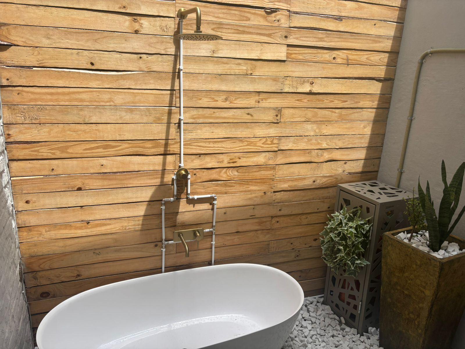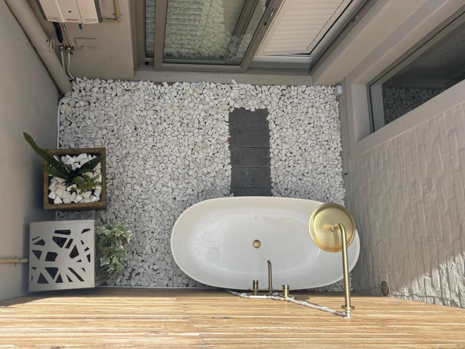 Unwinding Mossel Bay is a lovely holiday home in central Mossel Bay. This home can accommodate 6 adults and 2 children. Its convenient location places you within easy reach of Mossel Bay's attractions, including pristine beaches, historical sites, outdoor adventures, and dining experiences.Unwinding Mossel Bay has 4 bedrooms and 4 bathrooms. The first and third bedrooms have queen beds and en-suite bathrooms with a shower. The second bedroom has a double bed with an en-suite shower, and the fourth has a bunk bed. This room includes a unique outdoor shower and bath, offering a refre