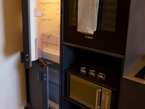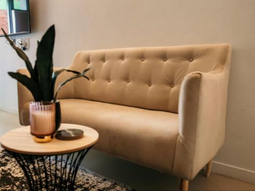 The studio is fully equipped for a seamless self-catering experience, including a modern kitchenette with a Bosch stove, oven, and refrigerator. The en-suite bathroom is finished with contemporary fixtures and a walk-in shower. For added convenience, guests have access to high-speed Wi-Fi, a smart TV, and a communal launderette.