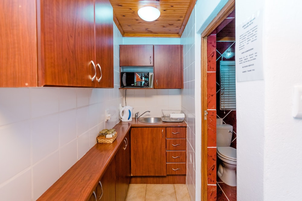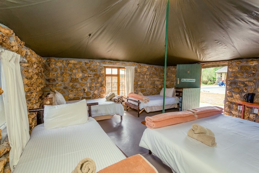 Braai facilities and a communal kitchen are available to the occupants of the Tent Rondavels as well as the Strandveld and the Farm Rooms are able to prepare light meals. There is electricity in all the rondavels and rooms and hot water in the rondavels; certain rooms are supplied by gas geysers. Additional ablution facilities for men and woman are available for guests, each consisting of three showers, basins and toilets. All linen and towels are supplied, however no room service is provided, this can be provided at an additional charge if required.