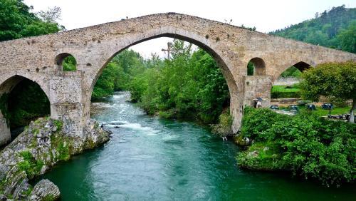 This attractive hotel enjoys a wonderful setting in Cangas de Onis. The hotel is set amidst the peace and tranquillity of the Rio Sella Valley. The town centre, with its countless shops, restaurants, bars and nightclubs, can be found just 1 km away. Arriondas is also 1 km from the hotel. Covadonga and the national park are 17 km away. Rivasdesella is 18 km from the hotel. This charming hotel appeals to business and leisure travellers alike. The guest rooms are beautifully decorated, featuring modern amenities for the utmost in comfort. The hotel offers a wide range of facilities and services, including an attractive cafe and a bar.