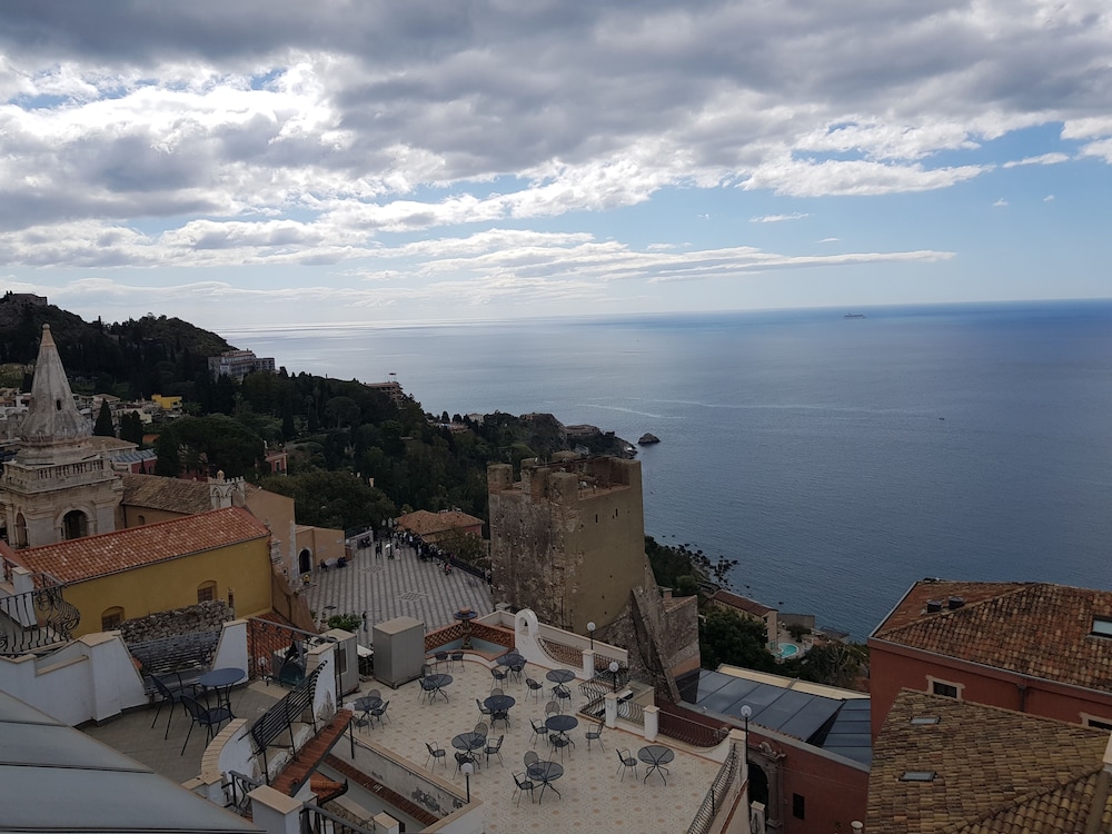 The traditional and elegant hotel Vello D'Oro is situated in the centre of Taormina, next to the Belvedere, Piazzetta SantAgostino, restaurants and shops. The Funivia is easily accessible by foot and takes you to the beautiful beach at Mazzaro, one of Sicilys most famous beaches.Nice reception waiting area, lounge room with bar and Sat. TV.53 comfortable rooms, all have private bathrooms with bathtubs or showers and with hairdryer. Each room has a safe deposit box (extra charge), satellite television and telephone with direct dial. All rooms have Air Conditioning (between 1/7-31/8). The Vello D'Oro offers a variation of rooms; some of the rooms overlook the panoramic terrace and some with direct sea frontal view whilst others have a lateral view. Choose between room with or without balcony.