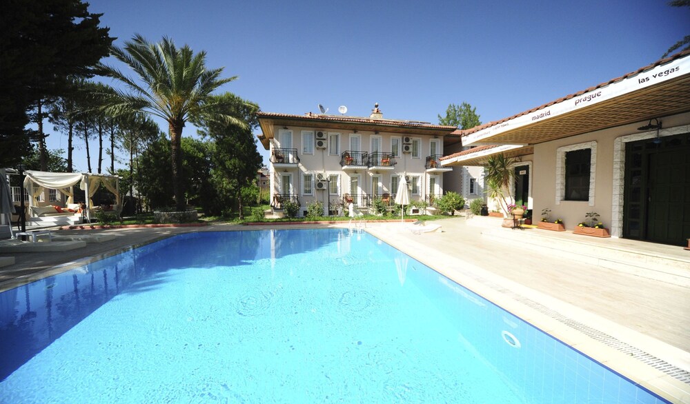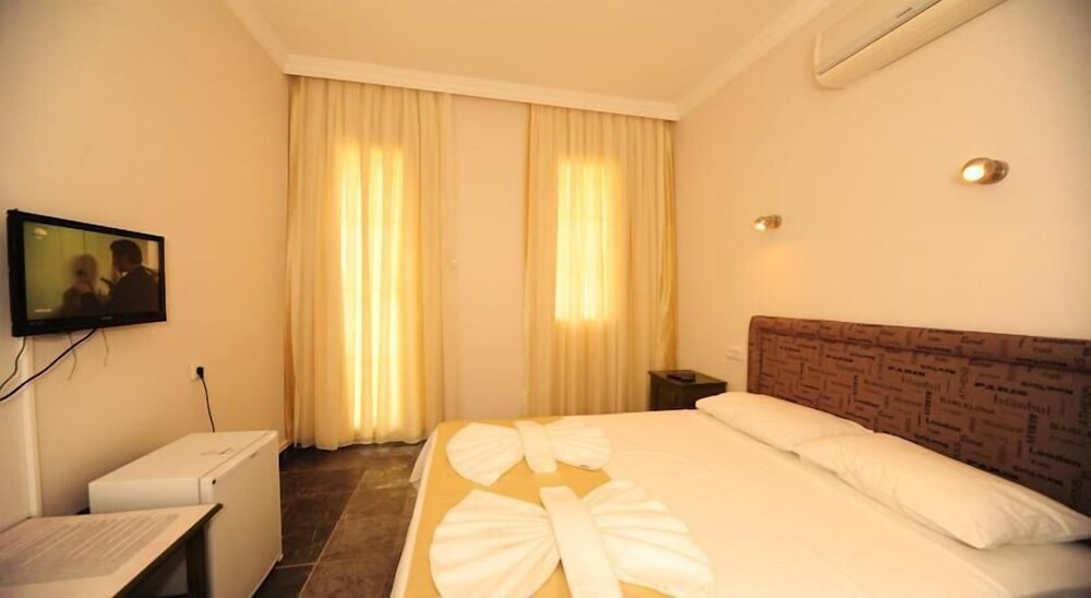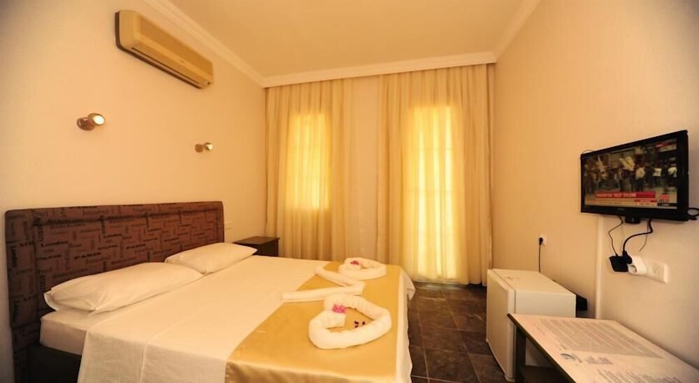 Facilities and services include a an outdoor pool, restaurant, bar, safety box at the reception (extra charge), parking, wireless Internet access, garden and 24-hour reception.Rooms feature air conditioning, TV, telephone, mini bar and balcony/terrace. ** Please note that some of the above facilities may be closed due to weather / seasonal conditions.Address: Olu Deniz, Hisaronu No 3, 48330 Fethiye, Turkey.