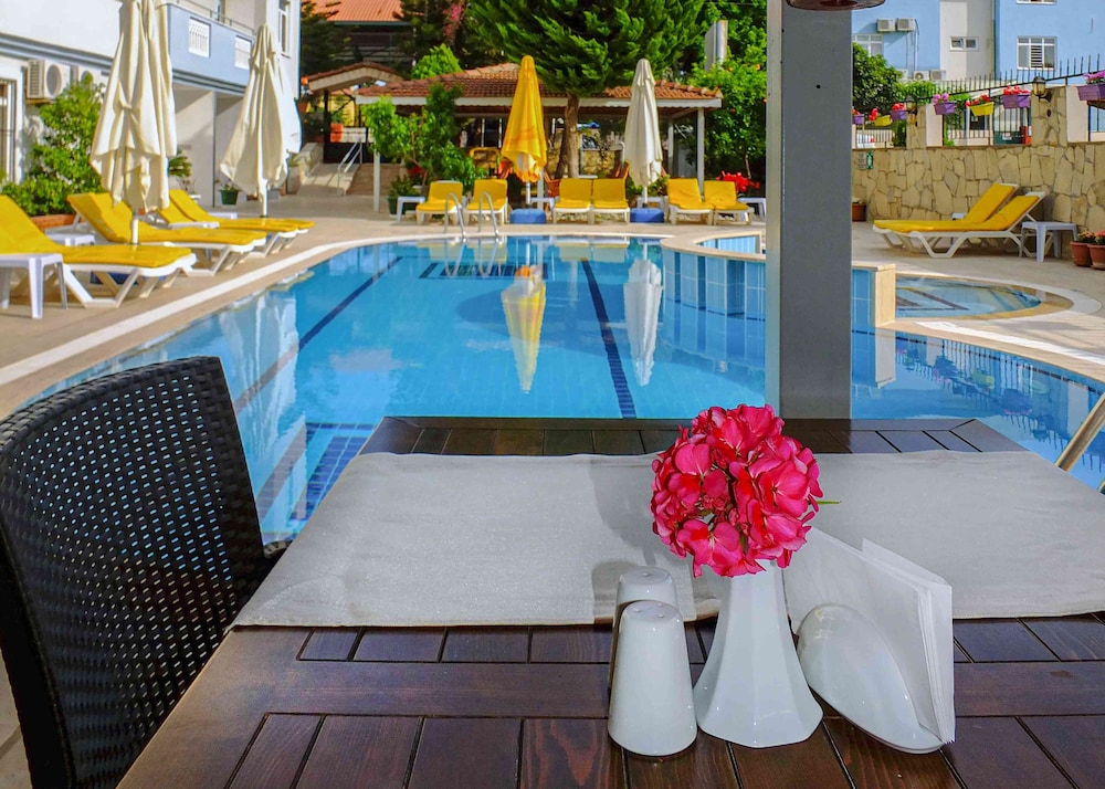 This complex lies in a secluded location, some 1.5 km from the centre of Side and about 1.3 km from the beach. An abundance of shops and entertainment venues are located in the immediate vicinity. There is stop for public transport about 200 m from the hotel and Antalya airport lies some 45 km away.The hotel underwent renovation work in 2005 and comprises a total of 34 rooms including 11 suites spread over 3 floors. It is fully air-conditioned and facilities on offer include a 24-hour reception desk with currency exchange facility. Also featuring within the hotel are a restaurant, a bar and a small supermarket. Room and laundry services are also available and there are parking spaces on hand for those guests arriving by car.Each of the apartments comes with combined bedroom/ lounge area and a separate bedroom. They are also all equipped with an en suite bathroom with shower and hairdryer, a direct dial telephone, a minibar and a hire safe. A kitchenette for easy self-catering, individually adjustable air conditioning and a balcony offering great views over the surrounding area are also all provided as standard in every accommodation unit.Guests are invited to relax in the well-kept grounds of the complex where there is a swimming pool with a separate children's area. The pool area is surrounded by sprawling gardens and a sun terrace, which offers guests use of a number of sun loungers and parasols. A poolside snack bar is additionally available.Guests may select their breakfast from a buffet. In the evenings there is also an à la carte menu on offer.