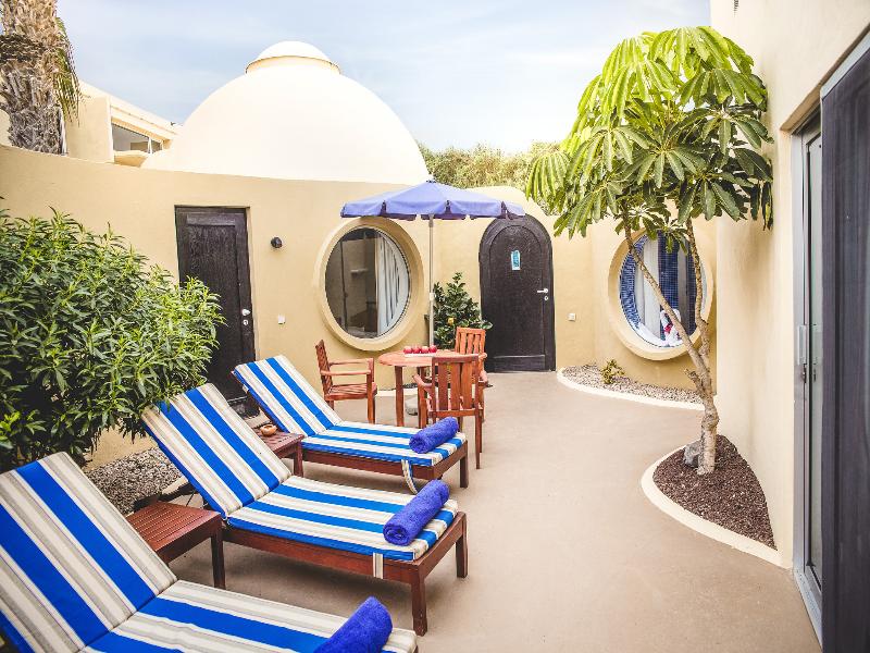 The VIK Suite Hotel Risco del Gato is an exclusive hotel with a unique architecture with 51 Suites surrounded by 34.643 m2 of gardens and swimming pools on different levels. This hotel is an oasis of tranquility and comfort on the stunning Island of Fuerteventura. The famous Sotavento Beach, in Costa Calma, is just 200 m. away from the hotel and the town center with shops, restaurants, bars about 2 km. Costa Calma Beach has been awared in 2013 with the Blue Flag, a symbol of envronmental quality conceded once a year by European Foundation on Environmental Education. The island's warm climate makes it a real corner of paradise throughout the year.