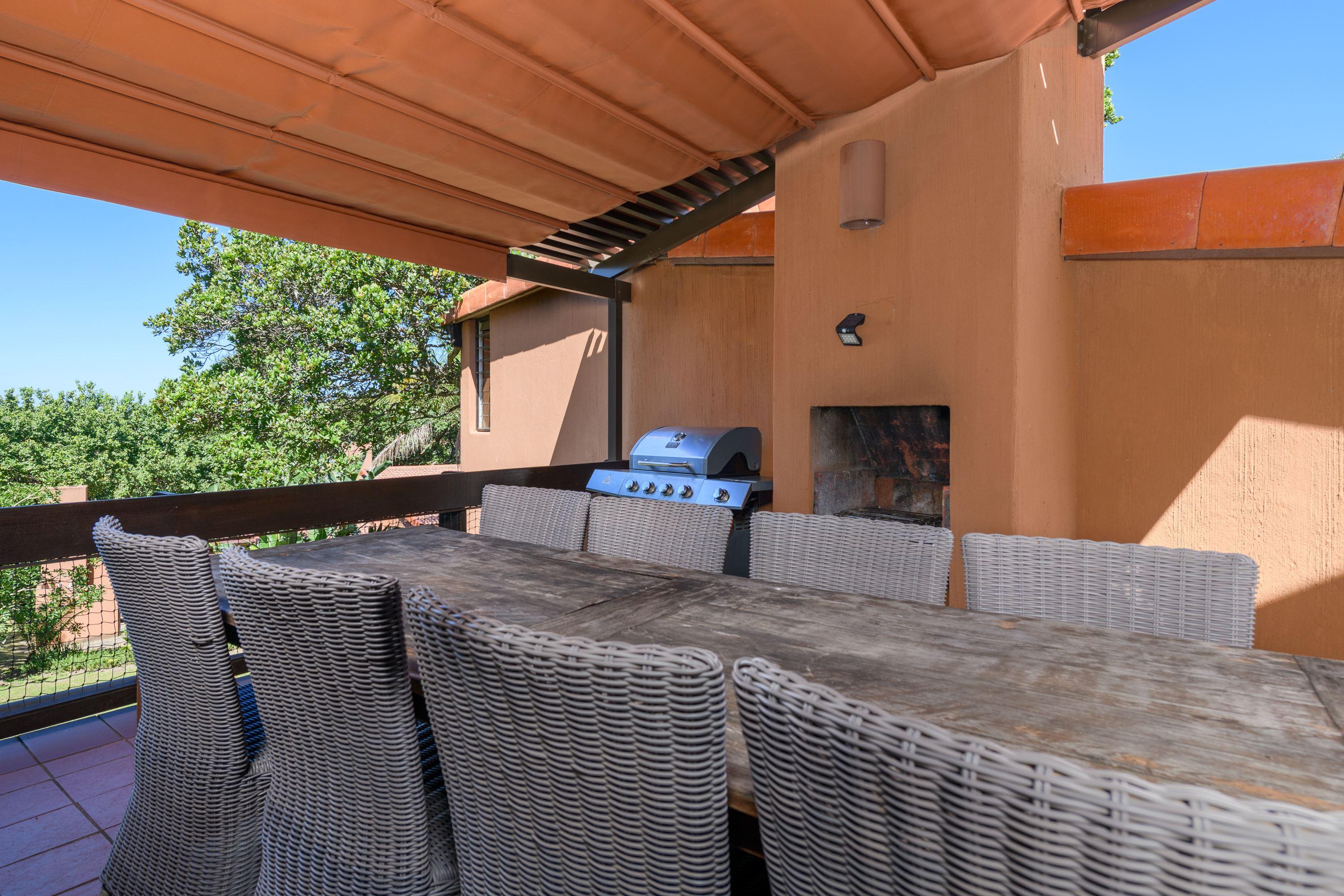 A classic 2-bedroom villa with modern finishes that is fully equipped for the comfort of the guest. Main Bedroom has is queen bed and air-conditioning and is tastefully furnished. Bedroom 2 has 2 single beds that can be converted to a King upon request . Conveniently located in the middle of the Estate within walking distance to the amenities . The villa has an open plan effect with lovely stacking doors that fully opens ,filling the living space with fresh air and an outdoor sensation . The living area opens up to the balcony that has a gas grill for your convenience , as well as a built in