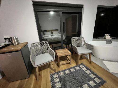 Please use the black rubbish bags provided and place them in the green municipal bins in the front before departure to discourage baboons from foraging.