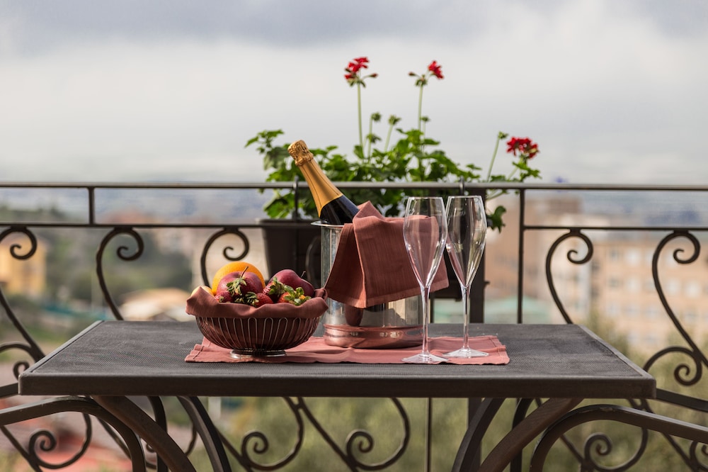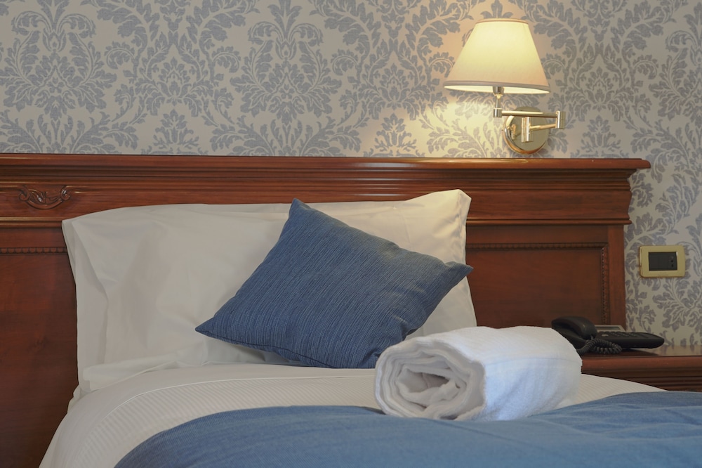 The garden surrounding the hotel is the perfect place to enjoy moments of serenity while reading a book or sip a relaxing drink whilst enjoying the splendid panoramic sea view and the Castel Sant'Angelo. The bus and railway stations are some 1.5 kilometres away. Catania-Fontanarossa Airport is situated at a distance of approximately 160 kilometres and Palermo Airport roughly 180 kilometres.The hotel stands in a unique and impressive location and is a splendid example of 1920s Art Nouveau architecture. The building is designed with very natural proportions, and the beautiful open spaces offer guests the ideal setting for a relaxing holiday, surrounded by fine cuisine options. Comprising 12 guest rooms, the air-conditioned establishment welcomes guests in a lobby with its 24-hour reception and check-out service. Facilities on offer to guests include a hotel safe, lift access, a TV lounge, café, bar, pub and restaurant. Business guests are sure to appreciate the conference facilities. Wireless Internet access is available.The hotel has rooms in the main building and an elegant self-contained suite located in the garden. All rooms are elegantly furnished and equipped with a hairdryer, individually regulated air conditioning and heating, a telephone, satellite TV, a safe, a minibar and Internet connection. The en suite bathrooms are fitted with a shower. Each room also contains a double bed, fridge and balcony or terrace.Sun loungers and parasols are laid out on the beach.