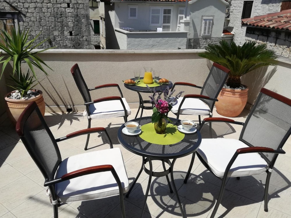 This friendly city hotel is located in the heart of Trogir's old town, just steps from the North Town Gate and the Trogir Cathedral. Guests will find a range of restaurants, bars and shopping opportunities close by and the nearest beach is just a 15-minute walk from the hotel. Links via public transport can be found approximately 100 m away, while Split Airport lies some 5 km from the accommodation. Comprising a total of 6 rooms, the hotel is housed in a traditional stone building, which has been completely renovated both inside and outside and equipped with the latest modern facilities. Fully air-conditioned, the hotel features a lobby and a large terrace on the upper floor, where guests can enjoy some relaxing moments in the sun. The hotel's guest rooms come equipped with private bathrooms and satellite TVs. Its great location and friendly staff make this residence a perfect place to stay while visiting Croatia.