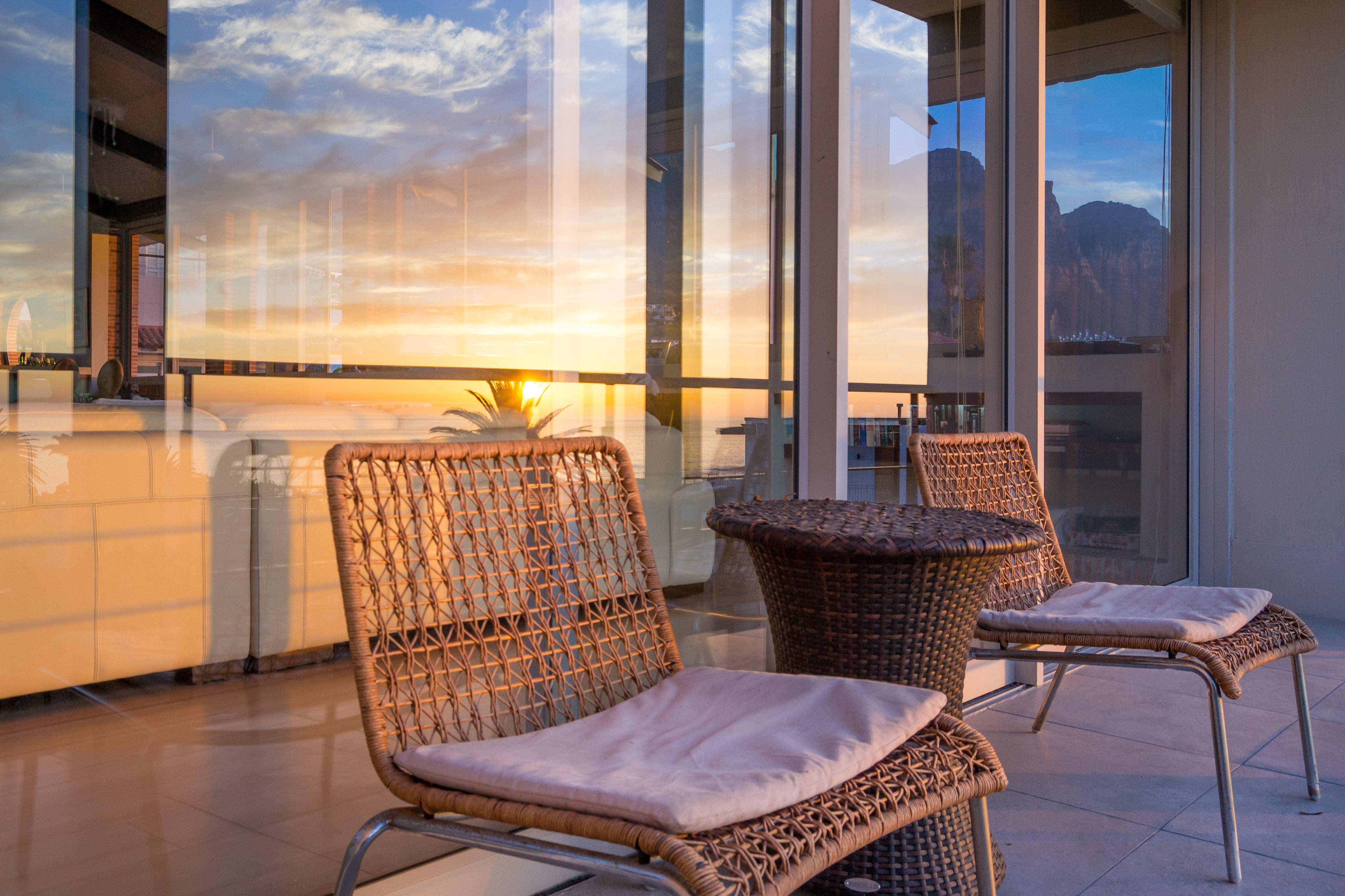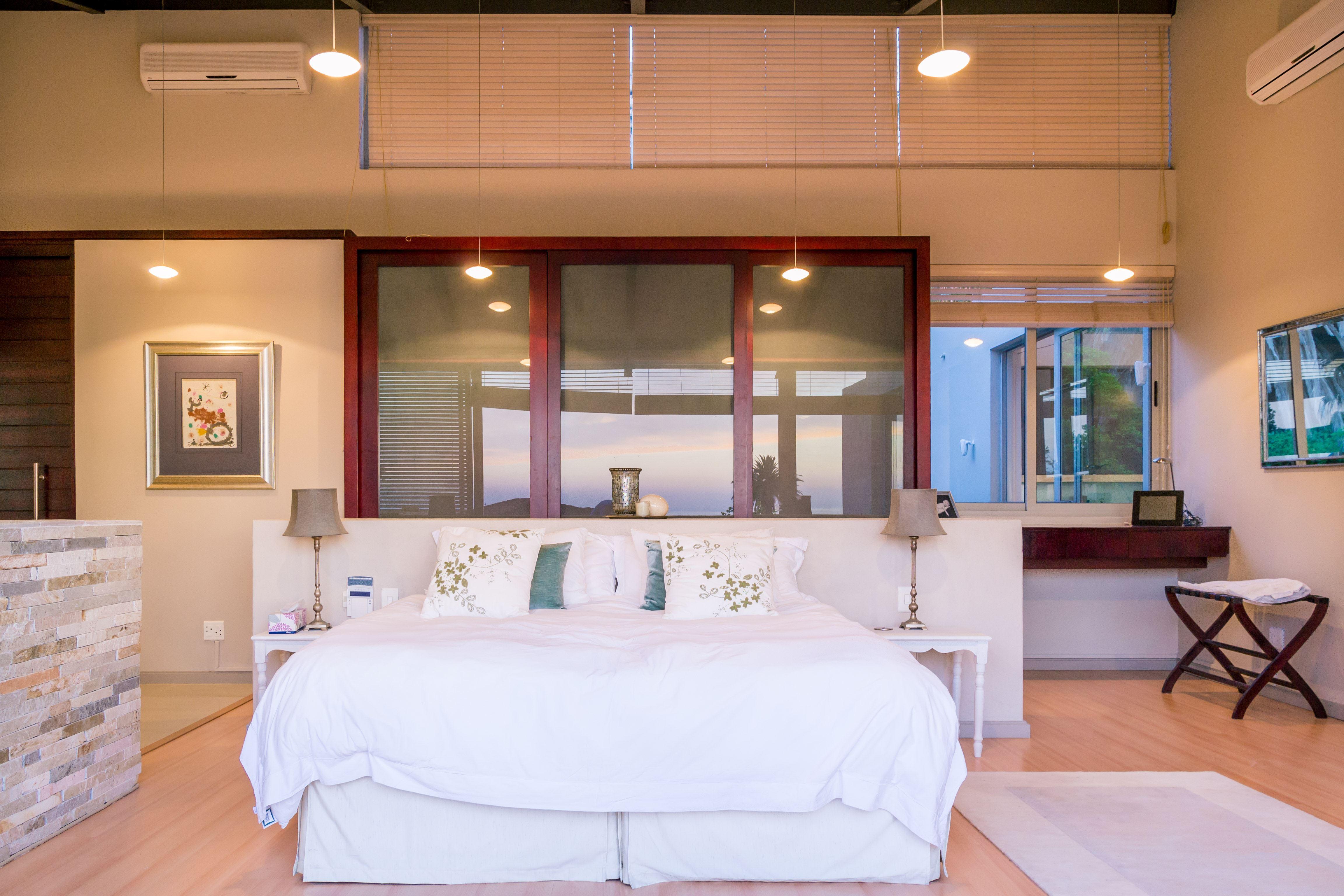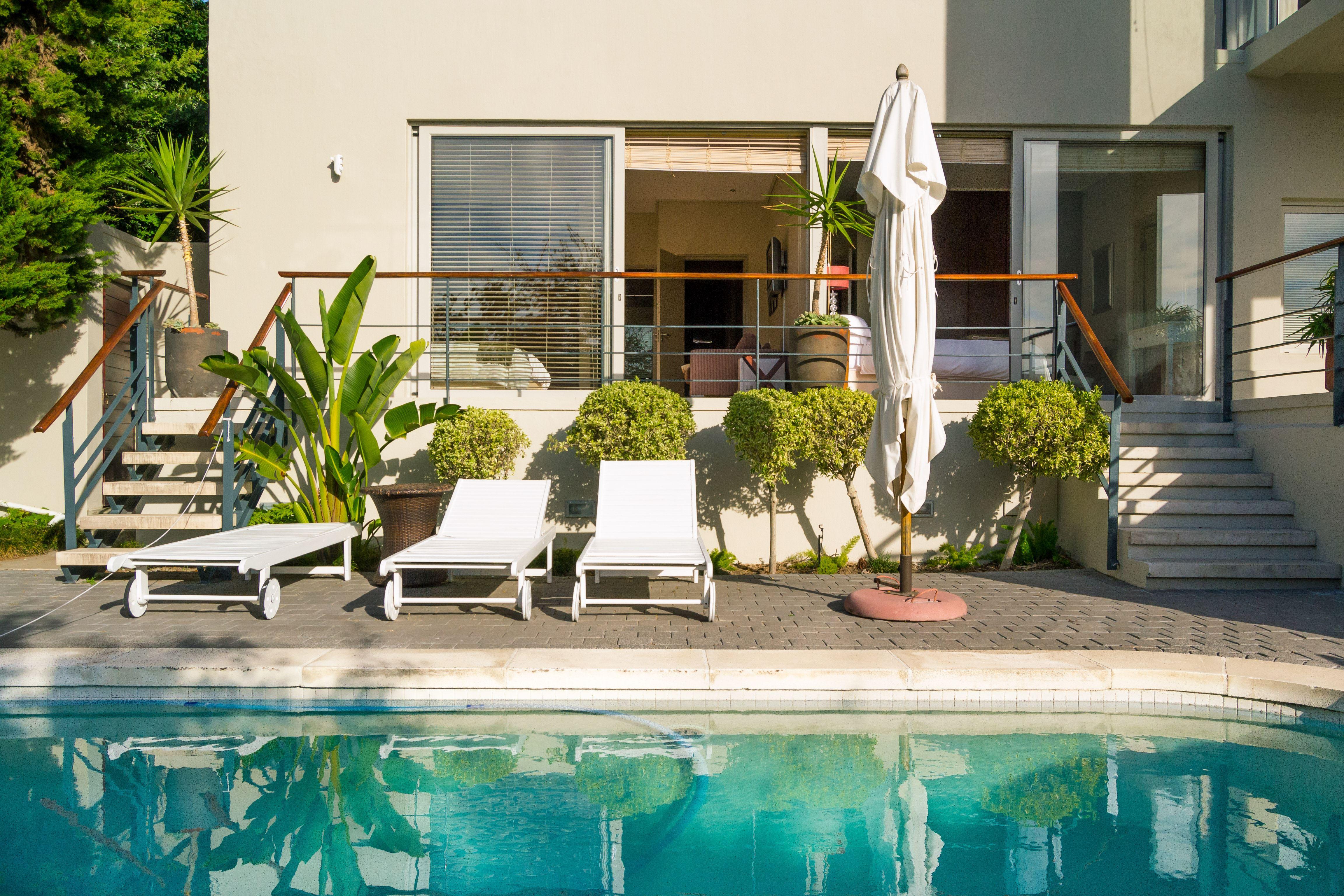 Villa Vista is a stunning house set in the upmarket Camps Bay in Cape Town. This house offers the full package, it is ideally located, has quality finishes, and offers a homey atmosphere. Walking distance from the beach.This air-conditioned house has three floors. The front door leads to a lounge that opens up onto a balcony with breathtaking seaviews. The living, dining and kitchen areas are all open-plan and boast amazing views of the ocean, The Twelve Apostles and Lion’s Head. A spacious balcony adjacent to these areas looks out onto the swimming pool. There are five beautiful e