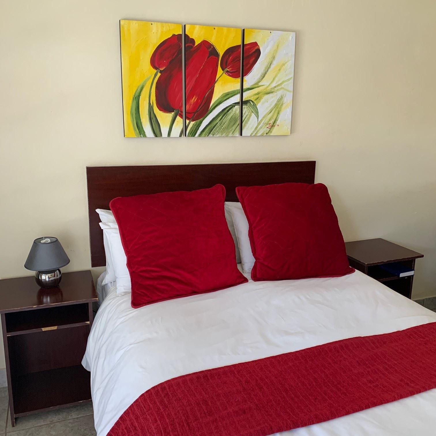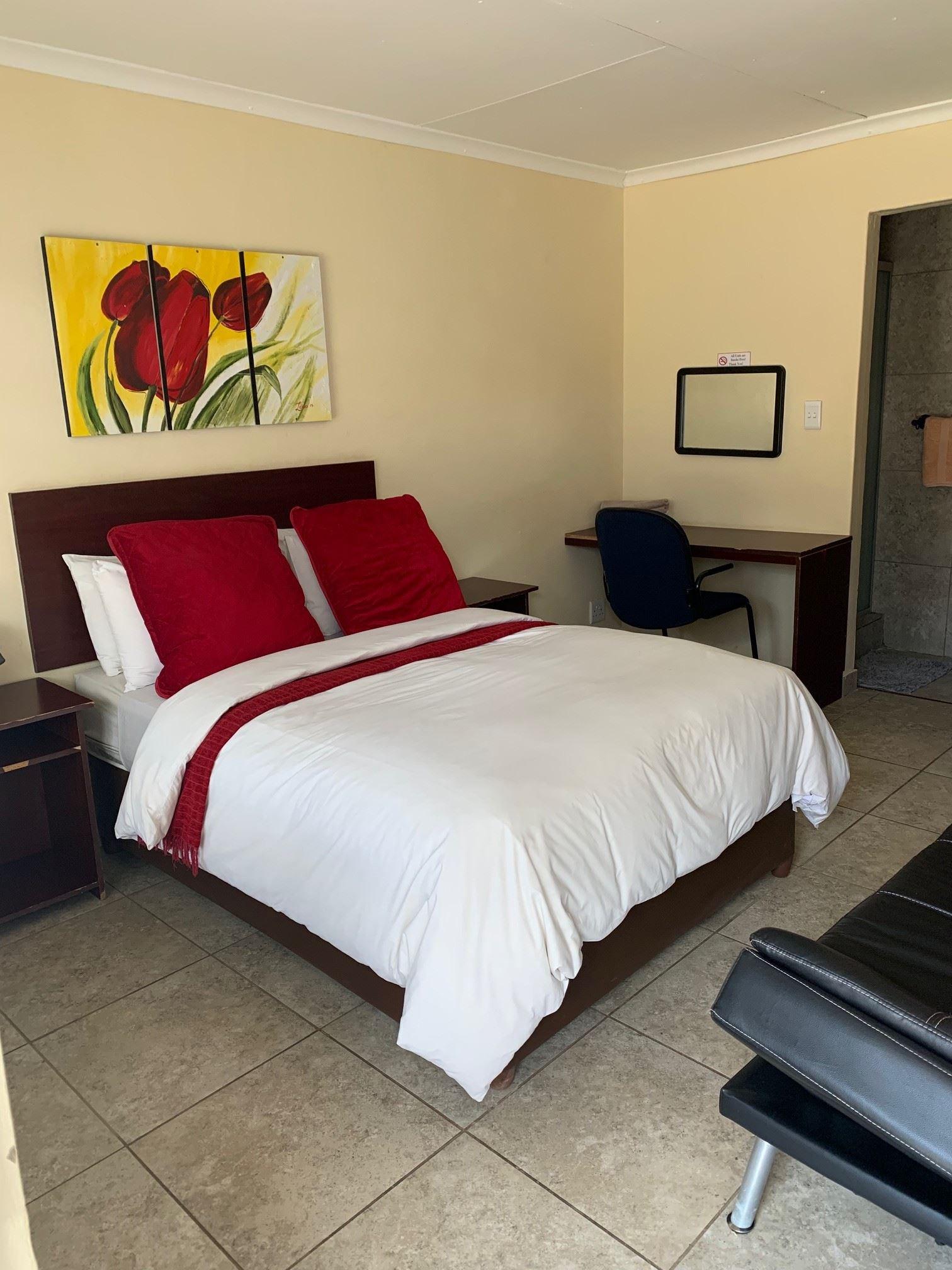 Villa de la Rosa Guest House is an elegant guest house ideally situated in Klerksdorp in the heart of the North West Province. This lovely guest house offers guests a choice of nineteen comfortably furnished rooms with en-suite bathrooms. The rooms are furnished with a combination of double and single beds and the en-suite bathrooms have showers only. Air-conditioned for comfort, each room is equipped with a TV with DStv and tea and coffee facilities. One room also has a family room where guests can relax. Meals are available on request and at an additional cost.Gue