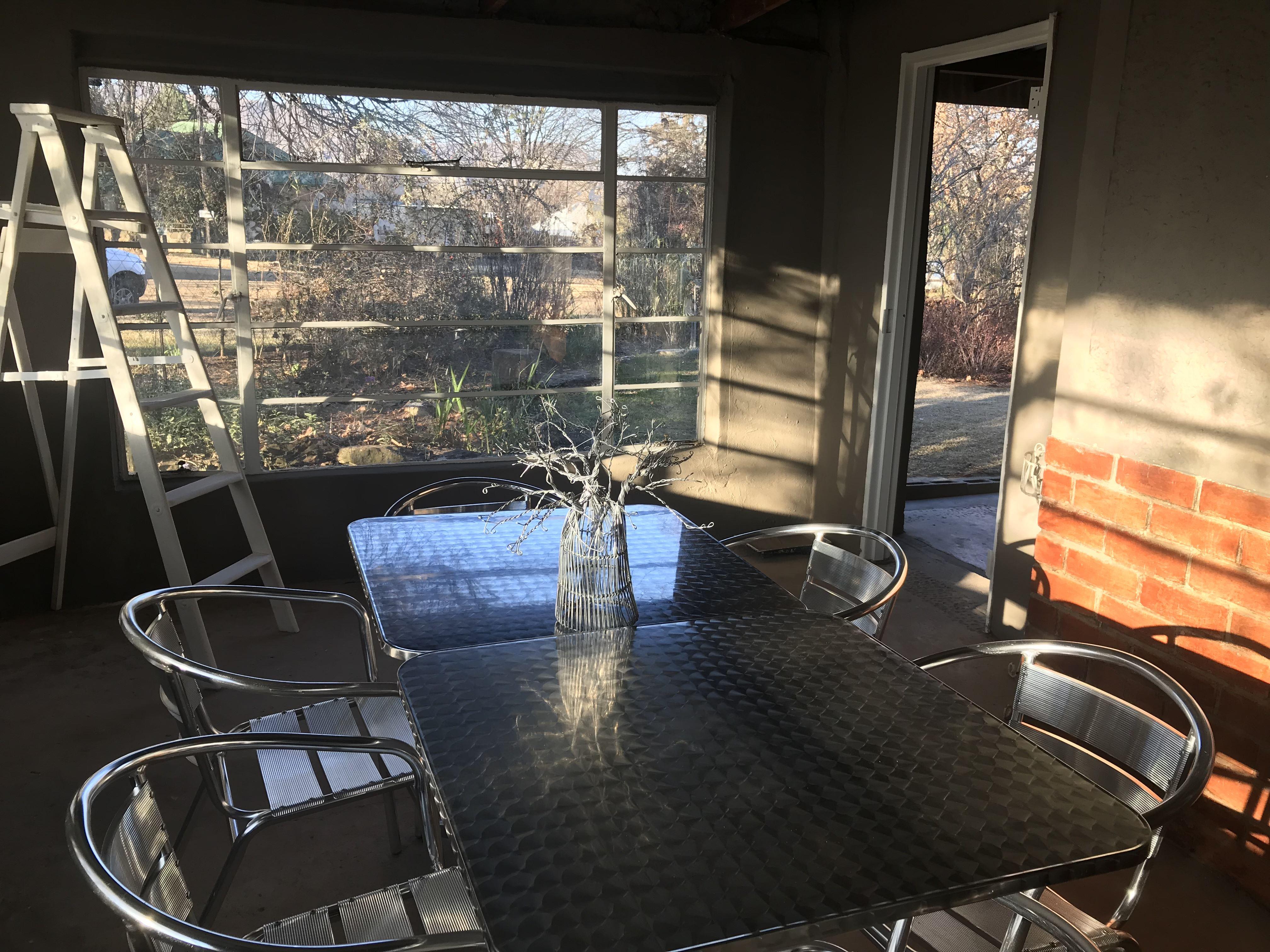 Village Studio is situated in the Eastern Free State little town of Fouriesburg, Village Studio offers accommodation for six people. The house is booked as a whole unit. It has three bedrooms fitted with one queen size, one double and twin beds, a large family bathroom with bath and shower over bath, a lounge, a dining room and a covered entertainment area. The kitchen is fully equipped. The large fenced garden allows us to also be Pet-friendly.Village Studio is the perfect venue for a family or group of friends who want to explore the beautiful Eastern Free State. Only