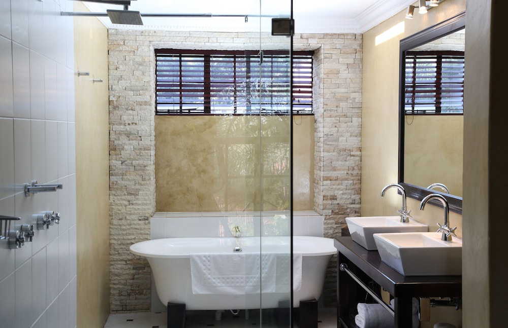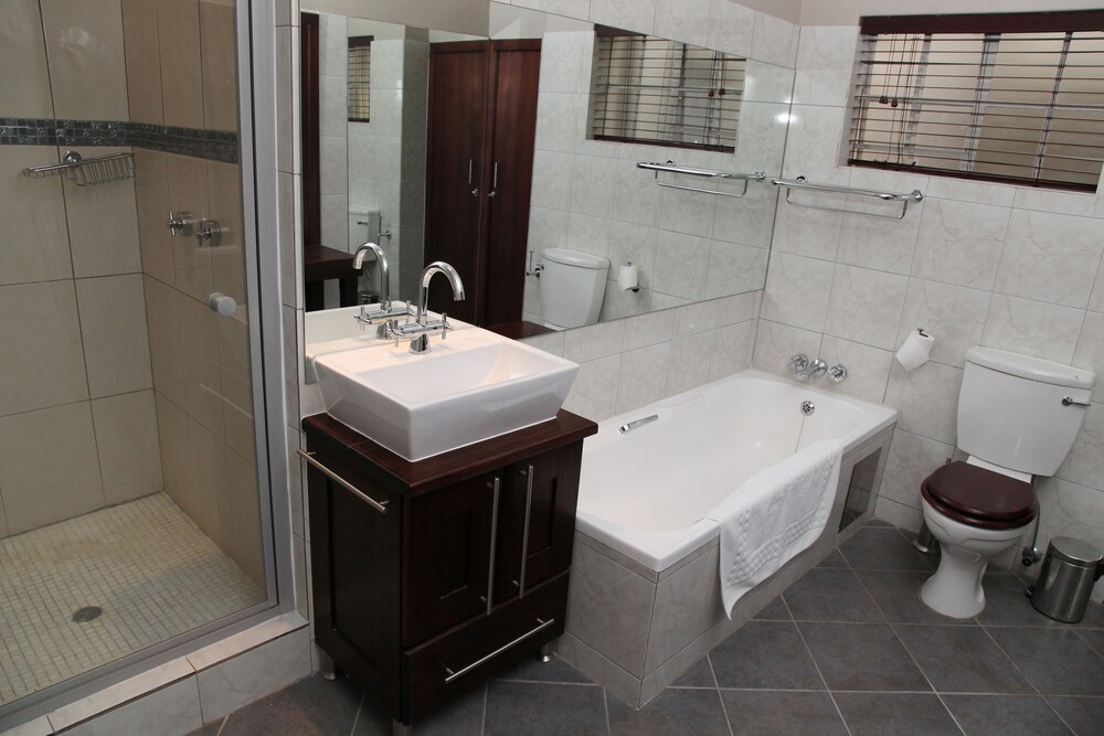 This modern, boutique listing has 27 suites ranging in luxury and size. Located in the quiet suburb of Nieuw Muckleneuk in Pretoria, this hotel is ideal for business and leisure travelers. The Standard Rooms are the only ones without a balcony or patio. All of the rooms are equipped with en-suite bathrooms and additional seating for guests. The rooms have Internet connections, telephones, satellite TVs and iPod docking stations. The rooms all have climate control and minibars and beverage stations available. The hotel is access controlled and has lush gardens for guests