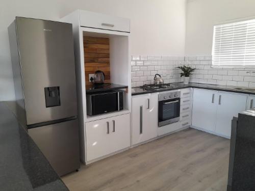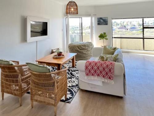 For larger groups, our Standard two-bedroom apartment 22 sleeps five with a king-size bed in one room and a double plus single in the other, complete with a bath and shower combination and balcony dining area. Upgrade to the Deluxe two-bedroom apartment 21 for added space and luxury, boasting a king bed, two singles, an open-plan kitchen and lounge with Smart TV, Wi-Fi, washing machine, and a balcony with a gas braai and dining facilities.