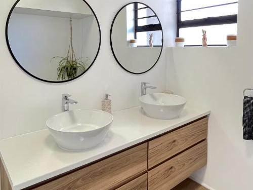 Our Classic three-bedroom apartment 39 on the second floor offers lagoon views, two queen bedrooms, a third with two singles, two bathrooms, and a well-equipped kitchen opening to a sheltered balcony with outdoor dining. The Luxury three-bedroom apartment 29 accommodates six guests with two queen bedrooms, one with two singles, en-suite and shared bathrooms, a fully fitted kitchen with breakfast bar, Smart TV, Wi-Fi, and inviting dining and lounge areas.