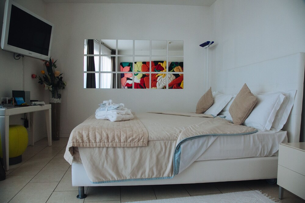 A magical place, an enchanting view, kind and warm hospitality: only the guests of the hotel have the privilege of experiencing the beauty, comforts and services at one of the most high-class hotels of Milano Marittima. The hotel offers professionalism and cordiality, which combine to create an ideal atmosphere for those who wish to spend their holiday in a young and modern setting. Renovated in 2010, the air-conditioned establishment comprises 18 guest rooms and welcomes guests in a lobby with a 24-hour reception. Facilities on offer to guests include a hotel safe, lift access, a bar, restaurant, conference facilities and WLAN Internet access. Those arriving by car may leave their vehicle in the car park and guests may hire bicycles on site.