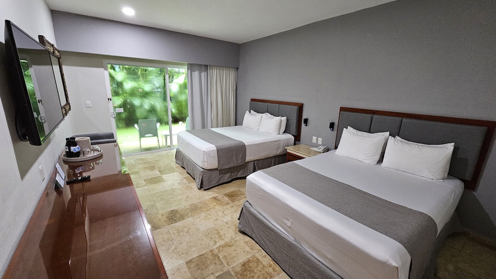 The majority of amenities and activities at this resort are included in the room rate; guests will not be charged extra for meals, drinks, activities, gratuities, or use of both land and water sports equipment.Not included:Airport transfers, Spa and beauty products, treatments, services, Optional or outside tours and excursions, Motorized water sports, Incidental purchases, Telephone, fax, and Internet access charges, Business services, Laundry and dry cleaning, Video and photo services, Babysitting services, Medical services, Room service, Airport taxes may or may not be included. All Rooms are equipped with: Two queen size beds, A/C,, Bathroom with tub and shower, Color satellite TV, Telephone, Balcony or terrace, Hair dryer, Safe .In case of choosing the option of "all inclusive":The All Inclusive-concept includes all meals (breakfast, lunch, dinner and snacks) and mealtime drinks such as soft drinks, beer, wine, water and alcoholic drinks, all of local brands. Drinks are served from morning until late evening (approx until 22.-24.00 hrs). Opening times vary between different hotels. In certain hotels the activities program is also included.Address:Paseo Xaman-ha, Lote Hotelero No. 5Playacar77710 Playa del Carmen, Quintana RooMexico