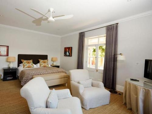 This is a great house for a couple (who can use the downstairs part of the house exclusively) or for a family or a group of friends. It has 6 bedrooms with a single bedroom for an overflow of kids as well as an outside cottage and can sleep 12 people.Each room is carefully and tastefully decorated with comfortable beds and has an eclectic collection of art. There are 3 sitting areas: the conservatory which opens out onto the garden, the main sitting room with the Satellite TV and the family TV room upstairs. The house has a gourmet kitchen kitted out with all the amenit