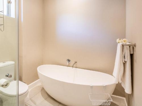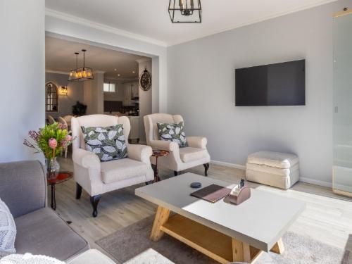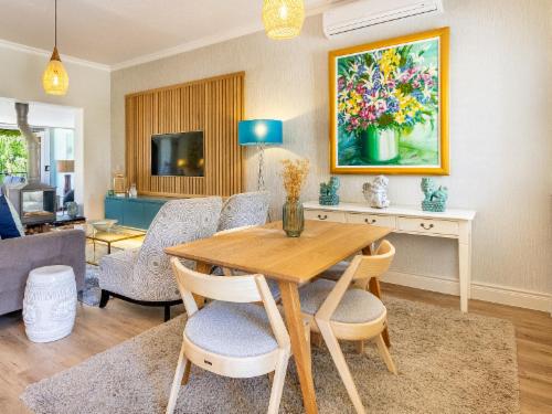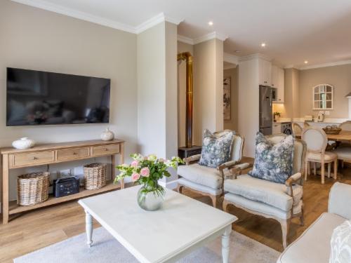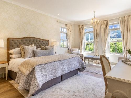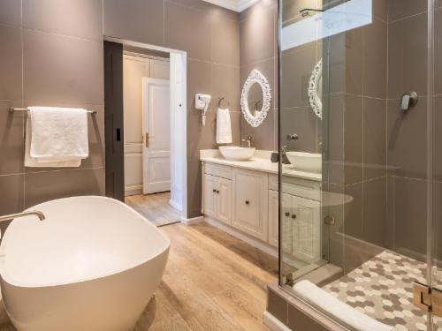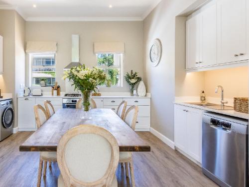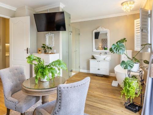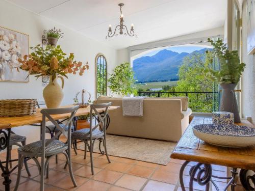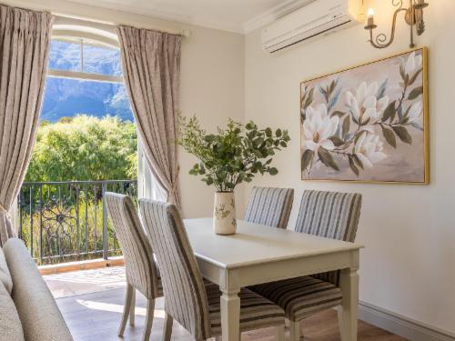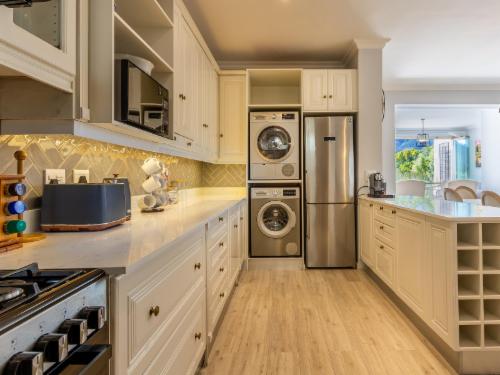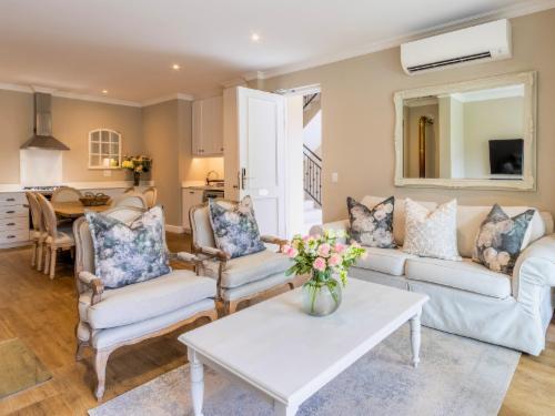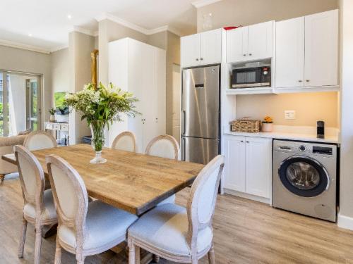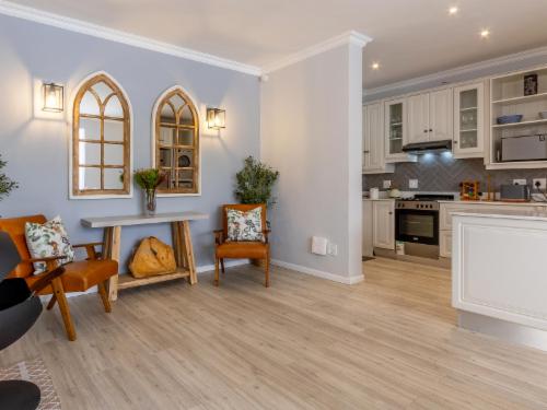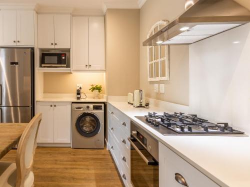 At W-Collection Franschhoek, we offer a serene retreat nestled amidst the beauty of Franschhoek's wine valley. This elegantly designed villa boasts a blend of classic French-inspired architecture with modern comforts. Upon entering, guests are welcomed by a spacious living area tastefully decorated with luxurious furnishings that create an atmosphere of warmth and sophistication.The fully equipped kitchen includes modern amenities such as an oven, refrigerator, microwave, and ample counter space, perfect for preparing home-cooked meals. Adjacent to the kitchen, the invi