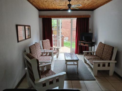 Whittals Chalets offers the tourist and discerning business people, affordable and relaxed comfort in fully equipped two bedroom chalets and a newly build conference venue, accommodating for up to 24 people. We are situated in Aliwal North, 400m from the N6. We pride ourselves on giving attention to all our guests. Come as a guest and go as a friend.Our nine chalets each consists of a living and dining area with a TV, leading to a tiled patio with a braai and secluded garden. The kitchen is equipped with a fridge, microwave oven, two-plate stove, kettle, toaster, frying pan, cutle