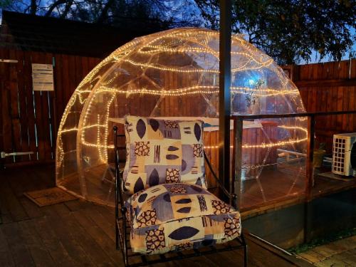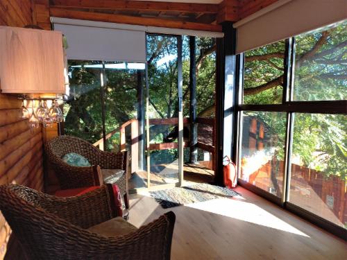 Windsong Living is a luxurious and tranquil property, housing 2 lodges on an Equestrian Estate in the Cradle of Humankind. The Nest and Eagle Own offer luxurious, intimate and secluded self-catering accommodation at the foot of a mountain covered with natural proteas.The Nest offers modern tree-house living at its finest. It is completely private and secluded. This lovely north-facing unit is wrapped by a 50-year old tree, and boasts a private Jacuzzi. The modern interior enhances the theme of birds, trees and leaves. It offers beautiful views of the Paardekraal Pass an