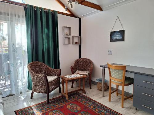 Eagle Owl is a deluxe free-standing unit with a separate open-plan living area, bedroom with a queen-size bed and en-suite bathroom with a shower, as well as plenty of cupboard space. The bedroom leads onto a private courtyard with a Jacuzzi. The unit has free Wi-Fi and a Smart TV with DStv and Netflix. Two comfy couches in the lounge alternate as single beds if required.