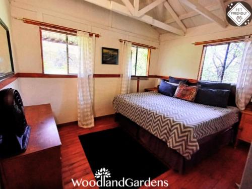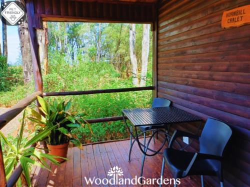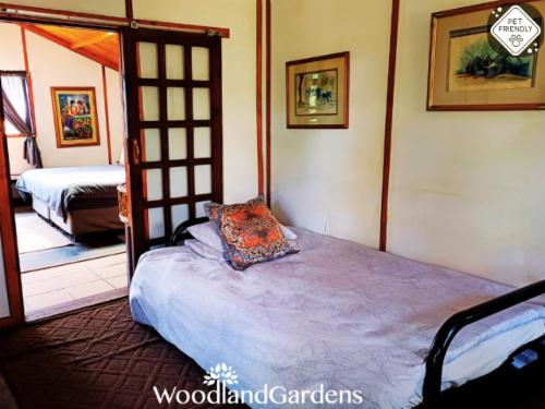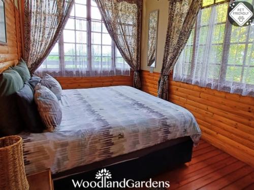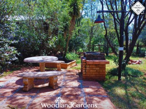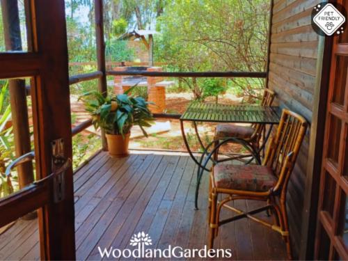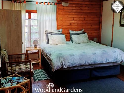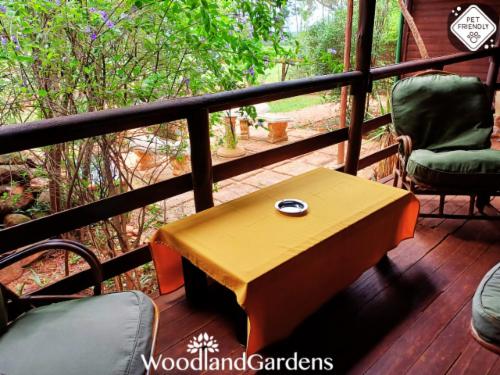 Woodland Gardens is a fully equipped self-catering accommodation in the Magaliesberg, we have fenced off spacious gardens around each cottage for pets, perfect for singles, couples and families needing to get away. Kingfisher group/family cottage requires a MANUAL quote, no Autoquote availableOur chalets are secluded, romantic and comfortable, with log fires. Each chalet has its own verandah, braai area, bonfire pit with wood, 32" flat screen TV, DVD player, and satellite dish (please bring your own decoder, remote and smart card to watch TV). We offer pet friendly accommod