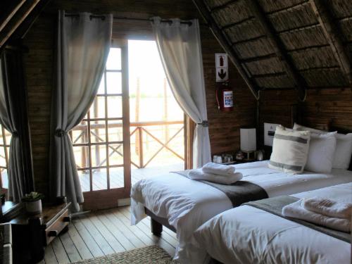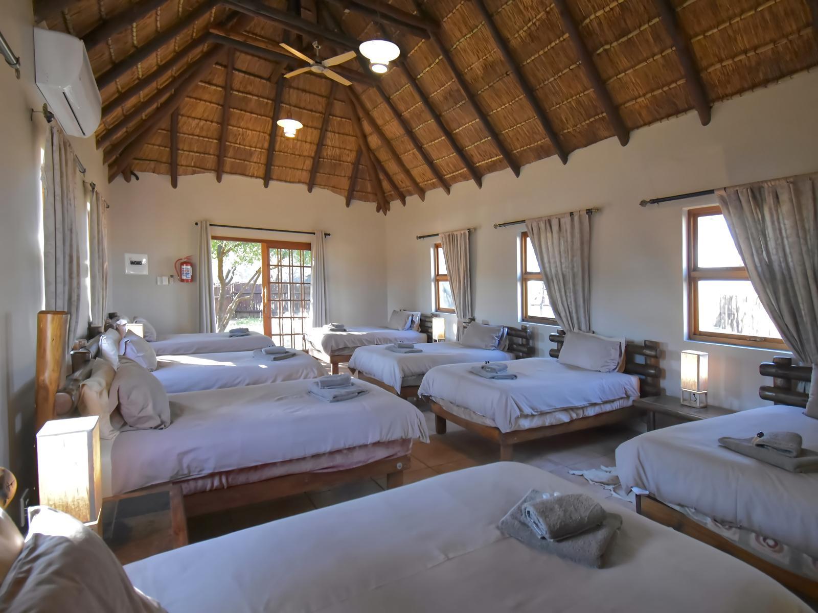 All of the above mentioned opens out onto a wooden deck fitted with a swimming pool. Throughout we have ensured that the bushveld theme is prevalent and that our guests will feel at home. For those who are not interested in hunting and who would rather watch the game than hunt it, we have made special provision to view the game and bird life at our lodge.