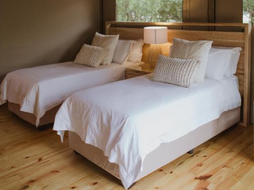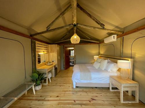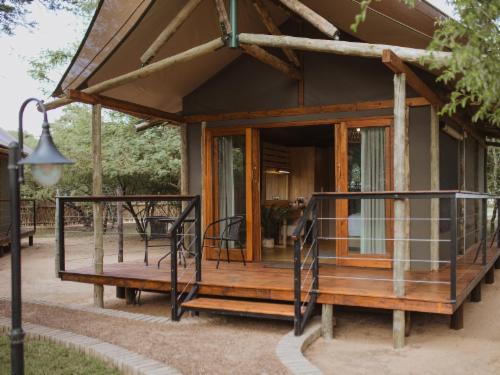 Luxurious, modern yet adapted to the bushveld environment, is how the accommodation at Woodside Game Lodge can be described. The accommodation consist of 4 2-bed wooden chalets with thatched roofs, each with its own bathroom: 2 with a Bath, toilet, and basin and 2 with a shower only, basin and toilet, 4 permanent Luxury Tents on wooden decks, (to experience the true bushveld atmosphere) The Luxury tents are equipped with a King Size bed and a bath.