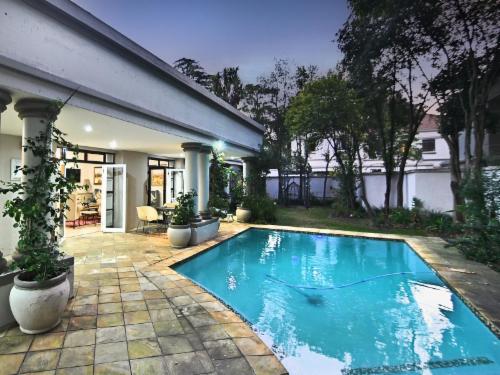 Perfectly situated, you're within exclusive proximity to the renowned Hyde Park Corner Shopping Centre, offering an array of amazing restaurants and shops. Enjoy a short drive to Sandton CBD, Rosebank, and major highways, ensuring easy access to all the best of Johannesburg. Guests will be personally welcomed by either the owners or the housekeeper and have full access to the entire house, grounds, and outdoor entertainment areas.