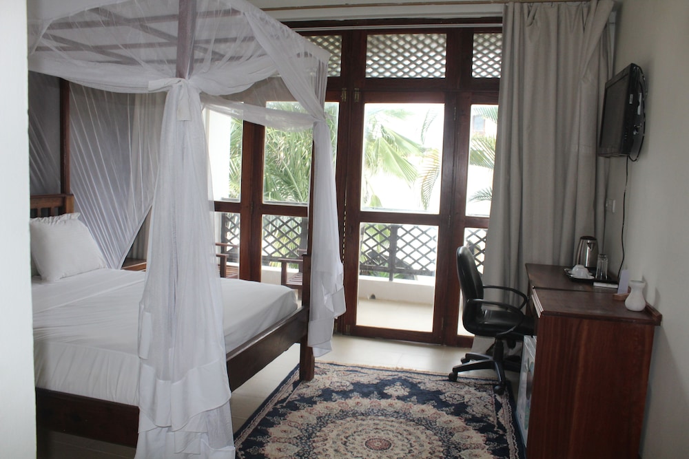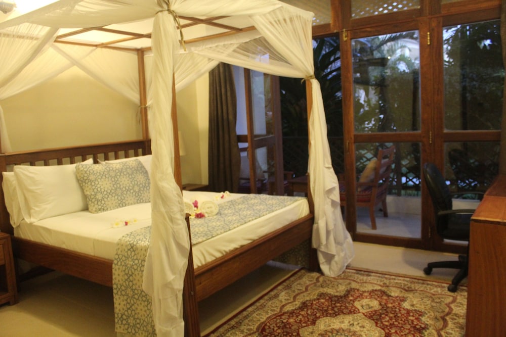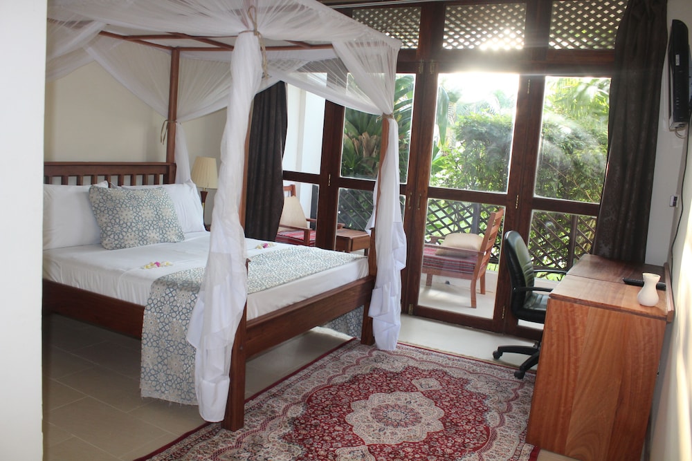 Each Deluxe Garden View Room comes with marble floors, spacious en-suite bathrooms, cotton linen, and furniture made from unique local Zanzibar wood. Room facilities include air-conditioning, a fan, a mosquito net, an LCD flat screen TV with DStv, and Wi-Fi internet access.