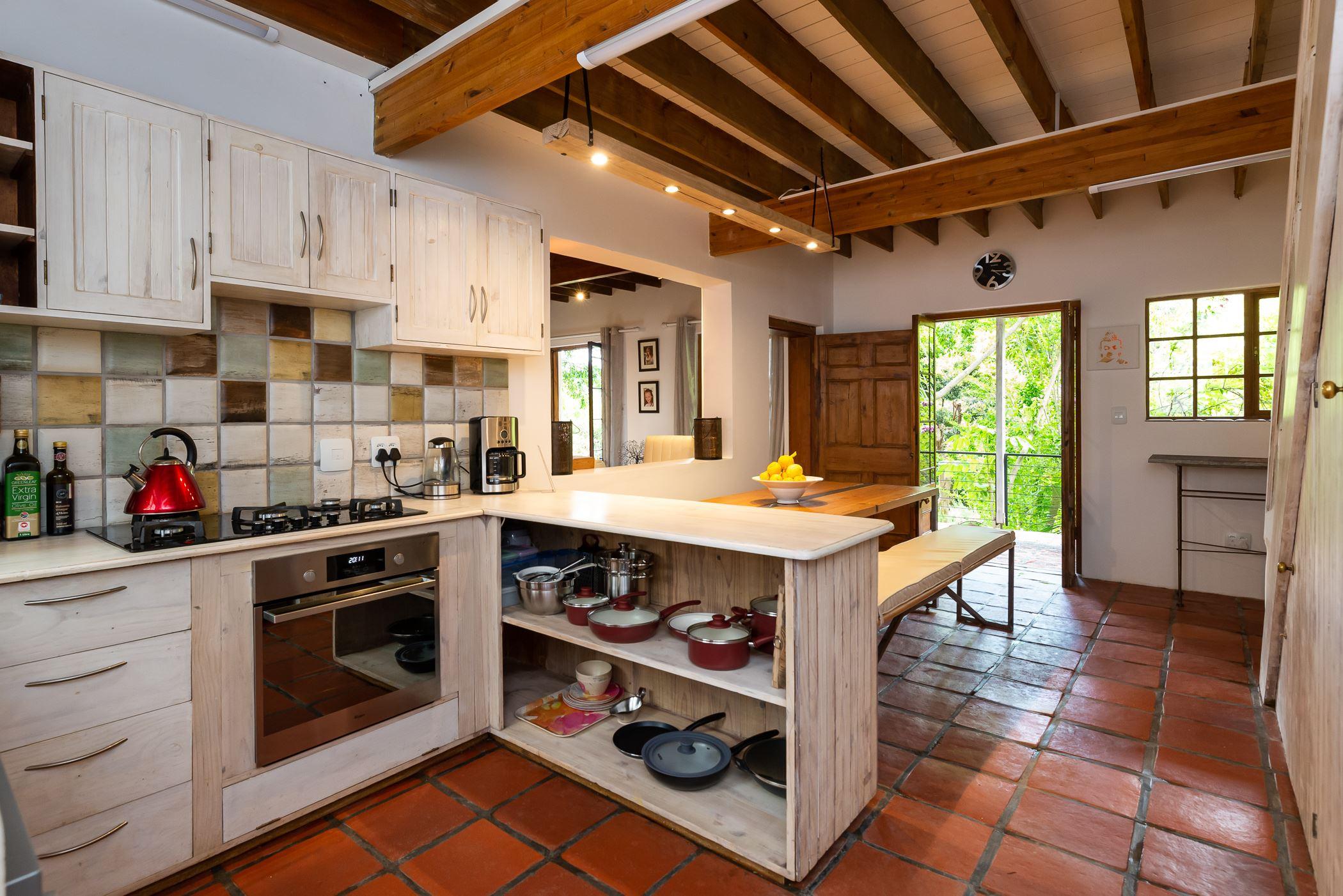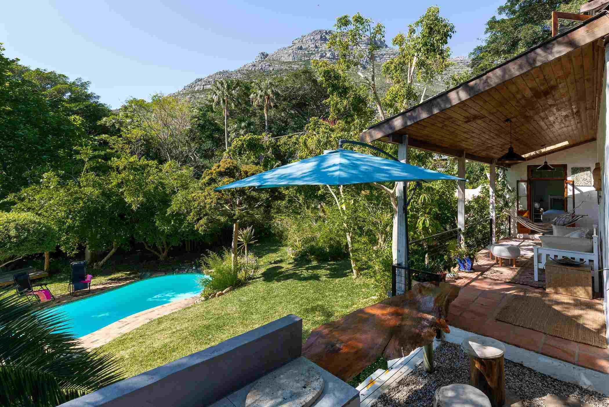 ZenCapeTown Holiday house is a unique property with a rustic farm-style elegance. It is nestled in the green valley of Scott Estate, close to Hout Bay. The self-catering home can accommodate up to six guests. The house is a large double-story with the main bedroom located on the second floor. This bedroom has a private bathroom with a double shower with a magifiscent view of a jungle garden. The second bedroom is downstairs with a double bed and doors opening onto a wide patio. The house has a large garden and swimming pool and a jungle like vista not unlike Vietnam. We are situat